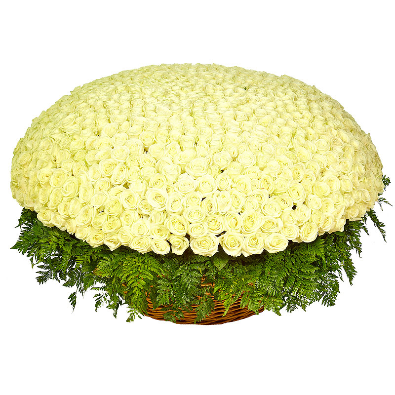Корзина из 1001 белой розы с зеленью